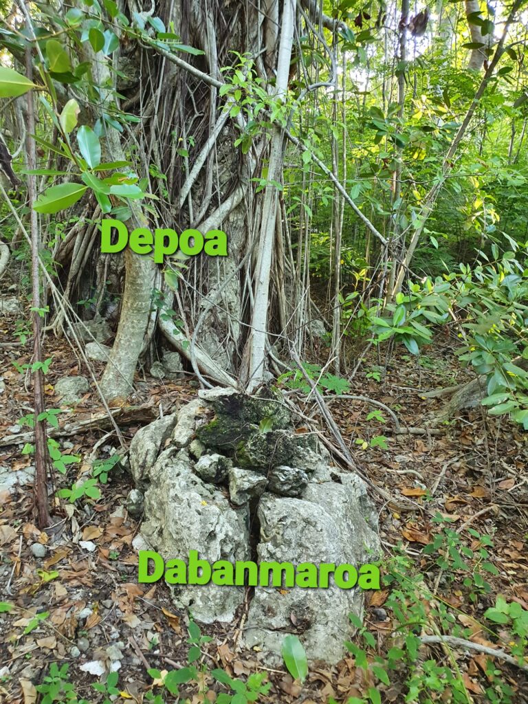 The sung hero Depoa who was adored and respected by many, once lived in a cave called Eraoin Depoa which is not far from where his spirit embodies a rock, standing guard over Dabuarik Dabanmaroa as her spirit rests in deep slumber.